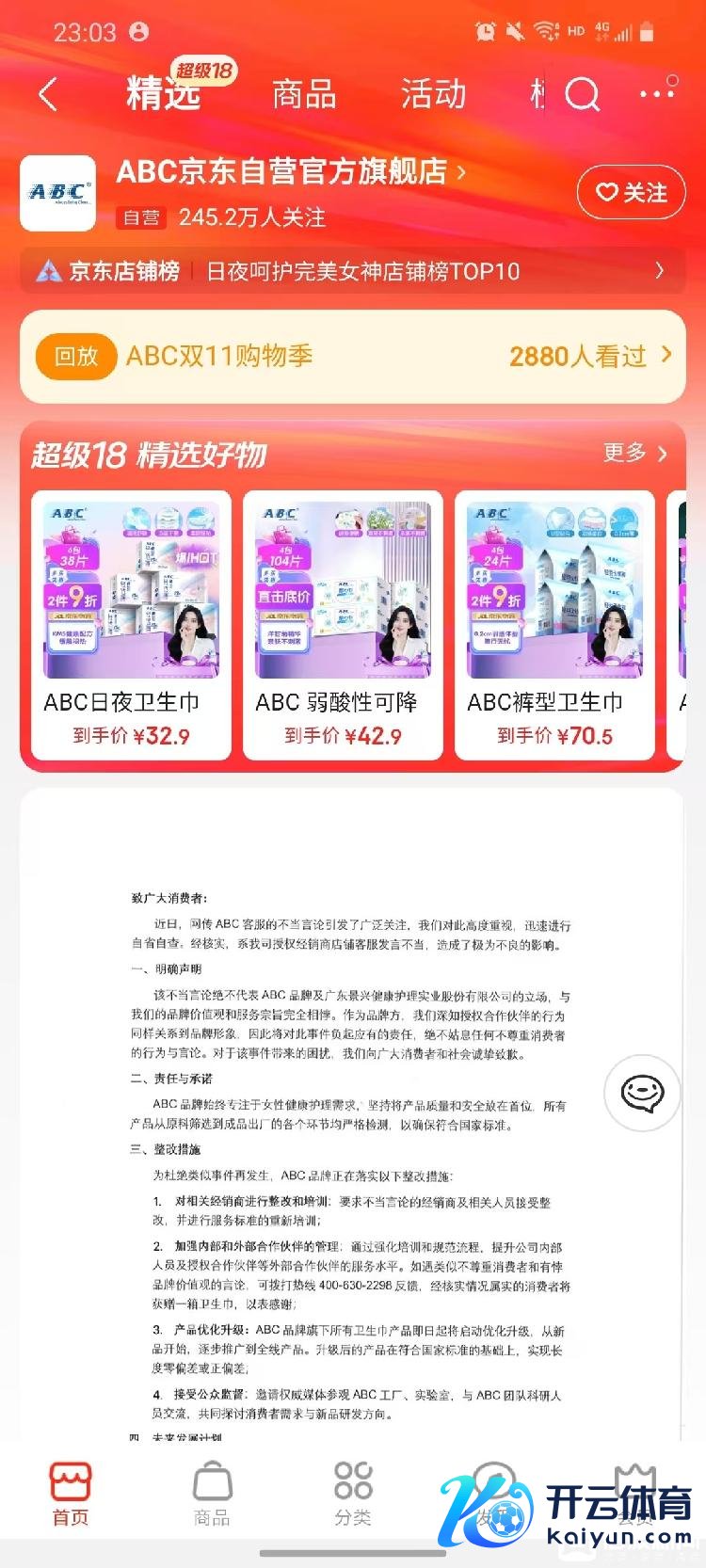 11月17日,“ABC卫生巾”话题登上微博热搜,“本色长度与标示长度存在偏差”“客服失当回复引争议”“PH值为C类圭表”等问题以致ABC天猫官方旗舰店下架统统家具,并进犯发布致歉声明。18日,海报新闻记者访谒济南部分大型超市、社区超市、便利店等发现,实体店仍在普通售卖ABC卫生巾系列家具,其中一包的售价在9.5元至10.5元傍边。