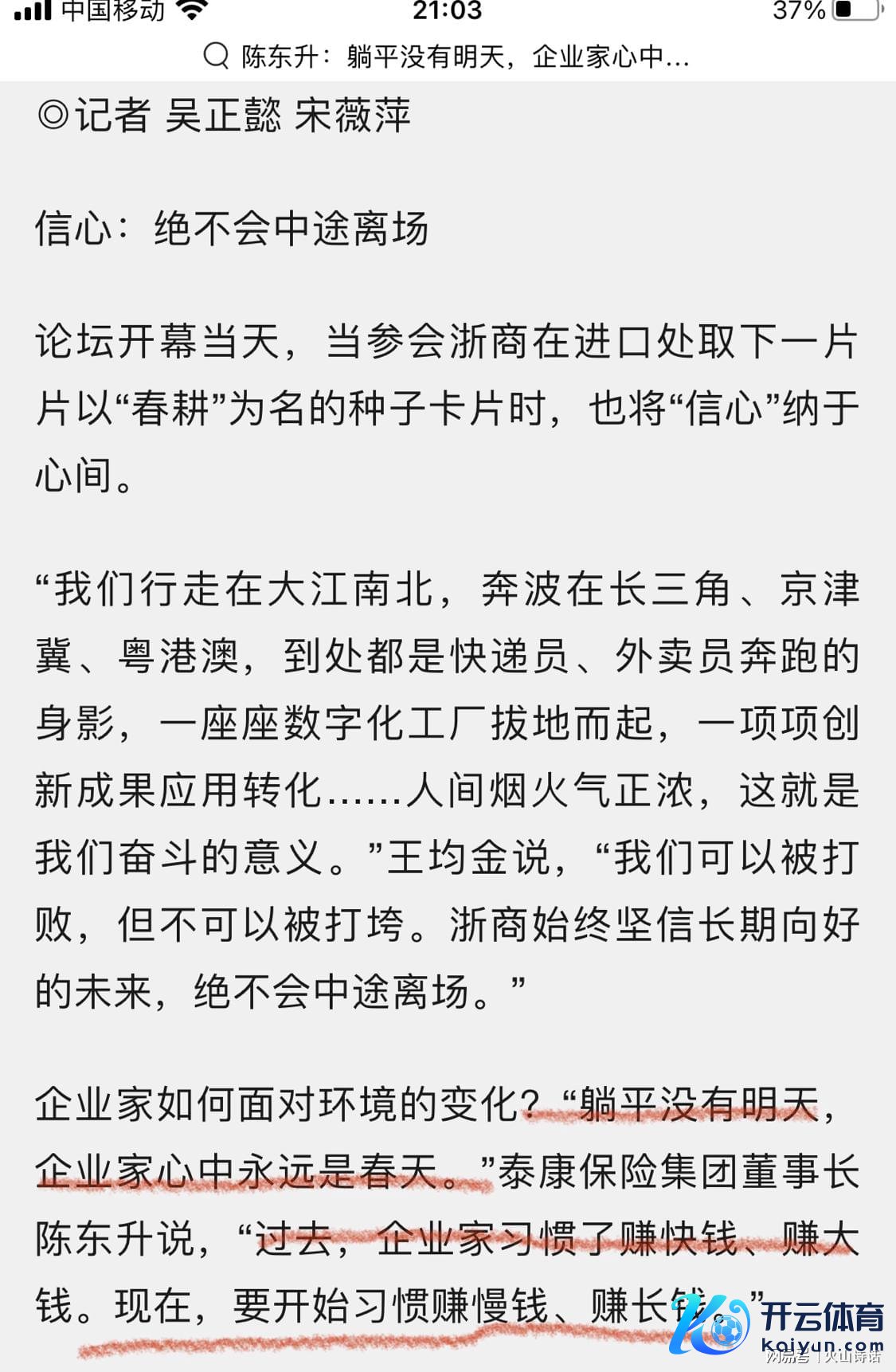 会上,谈到企业家若何濒临环境的变化?泰康保障集团董事长说,“躺平莫得翌日,企业家心中长久是春天。畴前,企业家民俗了赚快钱、赚大钱。当今,要初始民俗赚慢钱、赚长钱。”