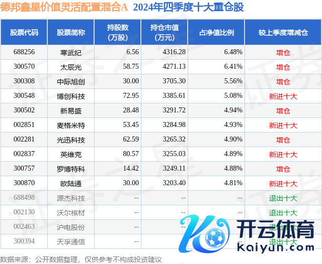 德邦鑫星价值活泼建立搀杂A为搀杂型-活泼基金,凭据最新一期基金季报暴露,该基金钞票建立:股票占净值比94.1%,债券占净值比0.85%,现款占净值比5.11%。基金十大重仓股如下: