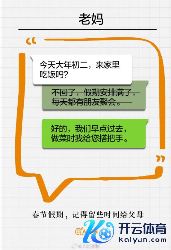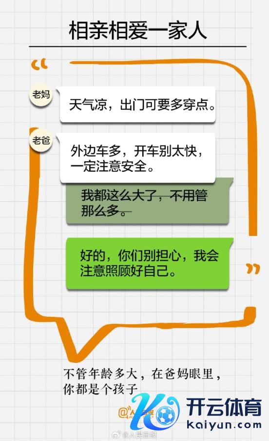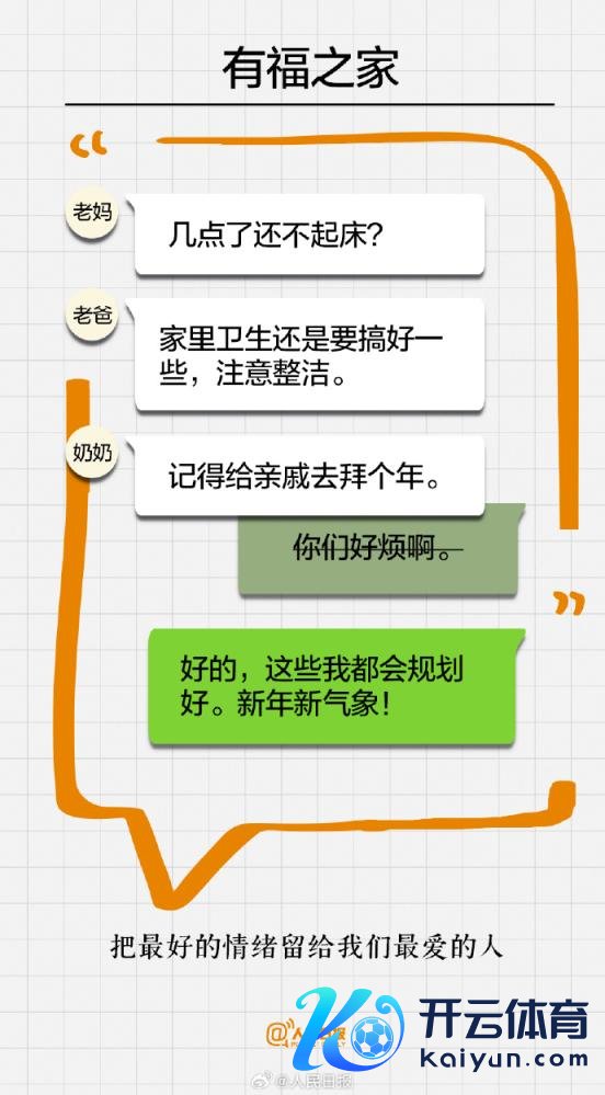 你是否也总把最佳的一面展示给他东谈主,却相通忽略了身边至关紧迫的家东谈主。越亲近的东谈主,越需要你的耐性。这个春节,多陪爸妈聊天,为家东谈主作念一顿饭……爱别等开云体育,孝别迟。趁咫尺还来得及,春节记起多留些技巧给家东谈主。祝父老们健康长命!