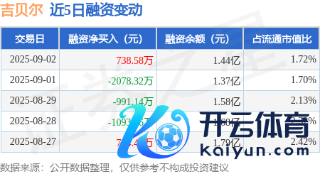 本站音讯,9月2日,吉贝尔(688566)融资买入4289.37万元,融资偿还3550.79万元,融资净买入738.58万元,融资余额1.44亿元。